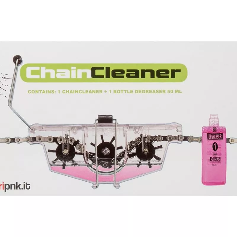 Kettenreiniger Gerät mit Reinigungsflüssigkeitinkl. Reinigungsflüssigkeitmit Nylonbürstenkeine Demontage der Kette nötigfür alle Kettenschaltungen