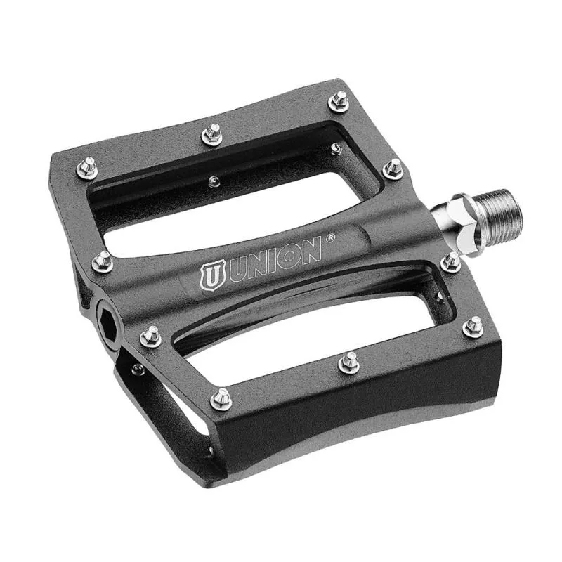 Pedal Union SP-1400 BMXAluminium schwarz mit PinsAchse: 9/16"CNC-bearbeiteter AluminiumkörperCrMo-AchseMaße: 110 x100mmgedichtete Industrielagerungsandgestrahlter Oberfläche