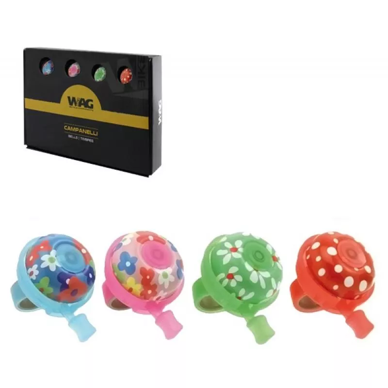 Glocken WAG Kinder "Fiori" Sortiment 12 Stückfür Lenker 19 bis 22 mm Material: Aluminium Hebel Schelle aus Kunststoff