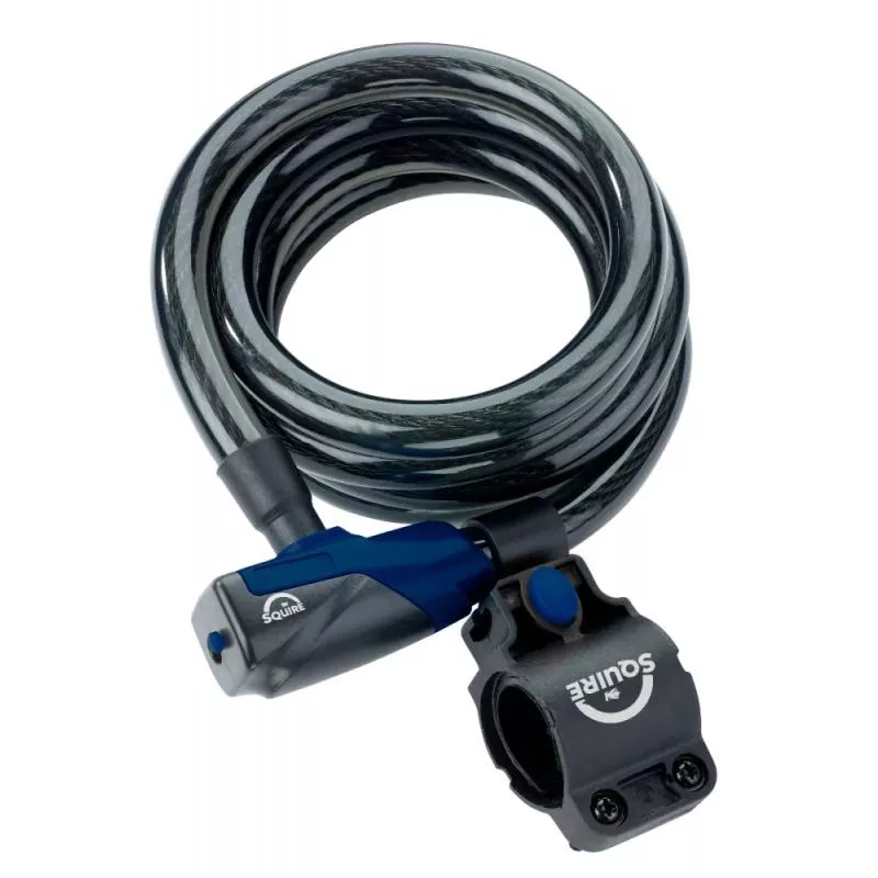Schloss SQUIRE Modell: KildaSpiralkabel Schlüssel 15 x 1800 schwarzStrapazierfähige, kratzfeste PVC-Kabelummantelung Staubschutz für den Schließzylindermit Halter für Sattelstütze