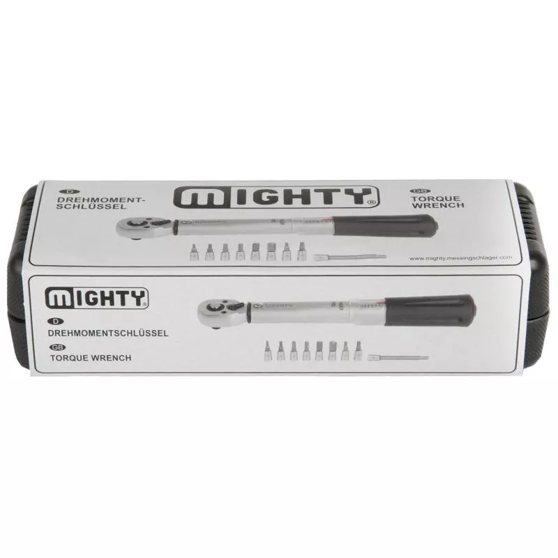 Drehmomentschlüssel MIGHTYhochwertige Ausführungumschaltbare Knarre (1/4") mit Richtungswechselverschiedene Aufsätze enthaltenim HardcaseEinteilung von 2 - 24 Nm5 mm Bit mit VerlängerungBits mit 3/4/5/6/8/10 mmT20, T25, T30